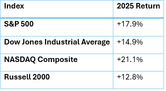 Financial markets closed out 2025 on solid footing. Equities and bonds both posted gains in the fourth quarter, and most asset classes ended the year with positive momentum.